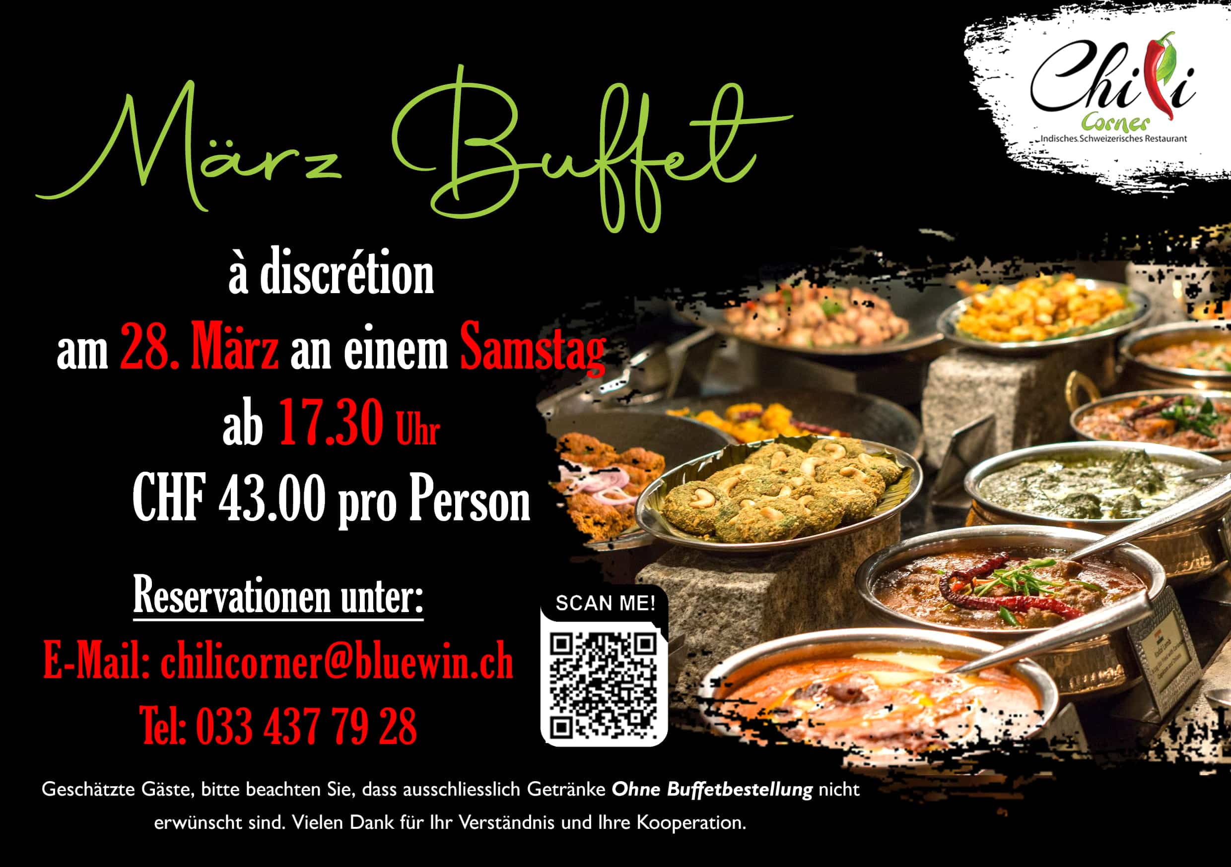 Das Chili Corner Restaurant serviert frisch zubereitete Speisen mit höchstem Anspruch, die gleichermaßen gut für die Gesundheit unserer geschätzten Kunden sind und zudem sehr preiswert sind. Wir verwöhnen unsere Kunden mit einer breiten Palette an schweizerischer und indischer Küche und bringen den traditionellsten Geschmack mit, um Ihren Gaumen zu verwöhnen. Wir sind stolz darauf, unsere Kunden nur die beste Qualität zu servieren. Egal, ob Sie Vegetarier sind, diätbewusst oder ein Verlangen nach köstlicher, brutzelnder Küche aus den Spezialitäten unseres Küchenchefs haben, besuchen Sie unser Restaurant Chili Corner und genießen Sie eine exquisite Küche.